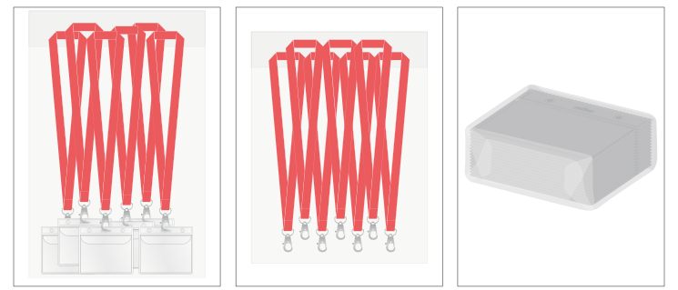- イベント会場に納品して、そのまま使用したいので、ネックストラップとIDホルダーを取り付けて納品して欲しい。