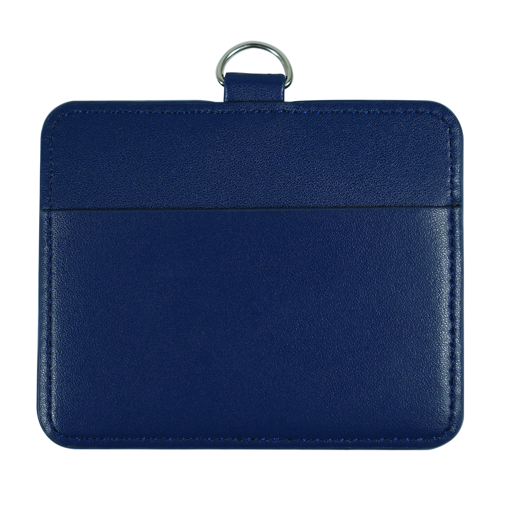 IDカードホルダー: 合皮(レザー調)カードケース 軽量タイプ HSPUSTDSLMBLUN<横型> 材質:合皮(PU、ポリウレタン) 色:紺色 適合用紙サイズ:92㎜(横) X 61㎜(縦) 外寸:103㎜(横) X 89㎜(縦) 中央部分の穴の大きさ:14㎜(横) X 4㎜(縦) ポケット:表面と裏面の2か所(表面は透明シートあり) 名刺は3枚程度まで入ります 中国製