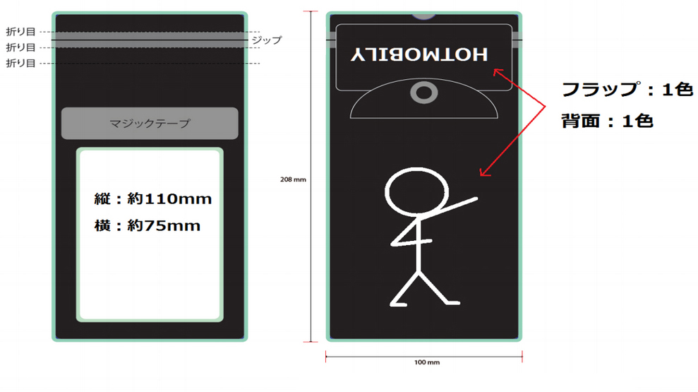 外寸: 100X208mm (チャック部分を全て広げた状態)